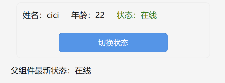 1. 创建父组件UserManagement,里面有一个用户数据对象,包含name, age, online状态。