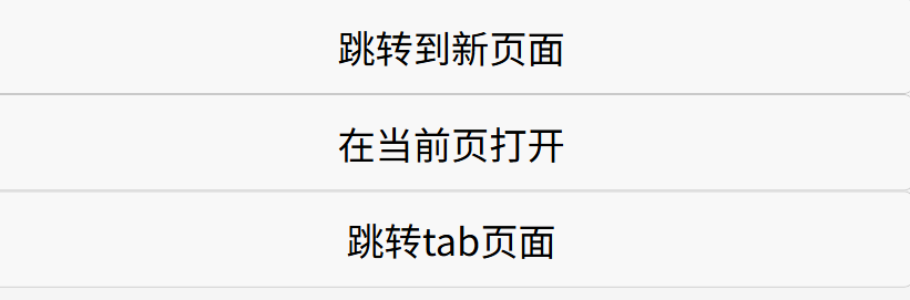 open-type | String | navigate | 跳转方式:navigate、redirect、switchTab、reLaunch、navigateBack、exit |