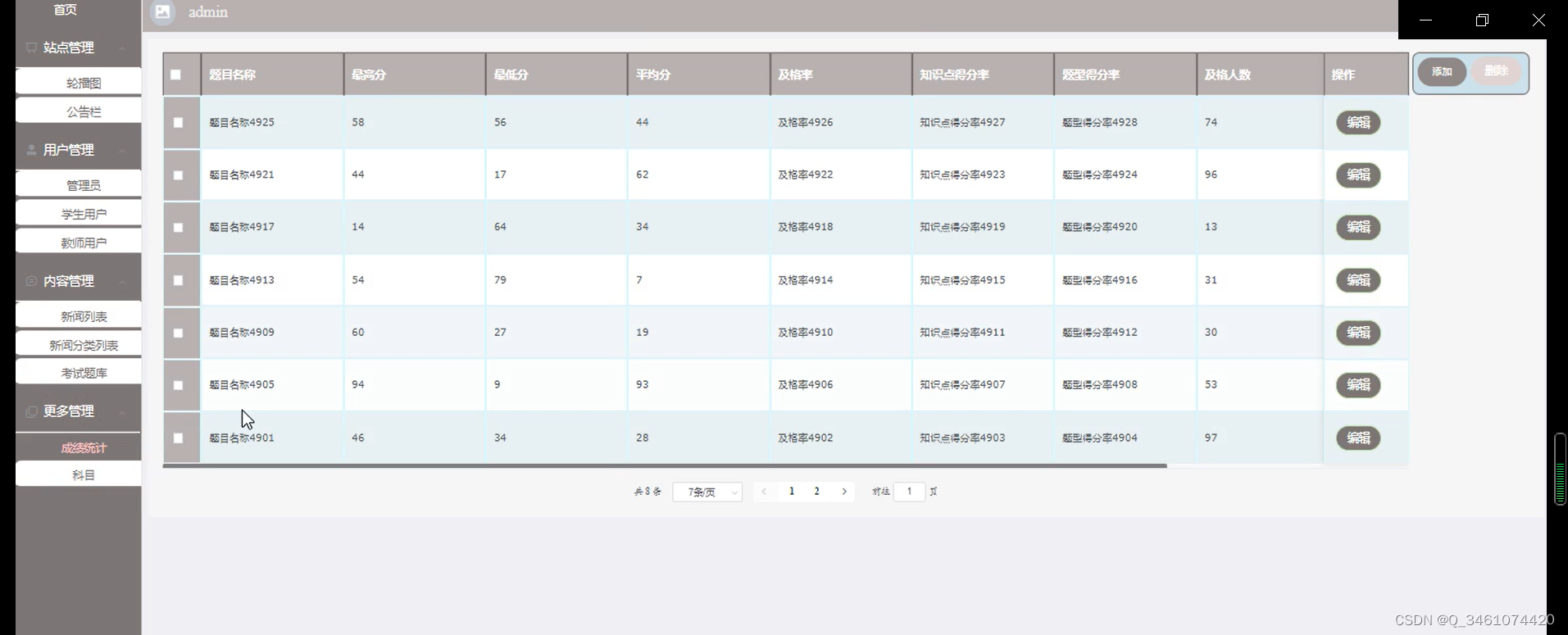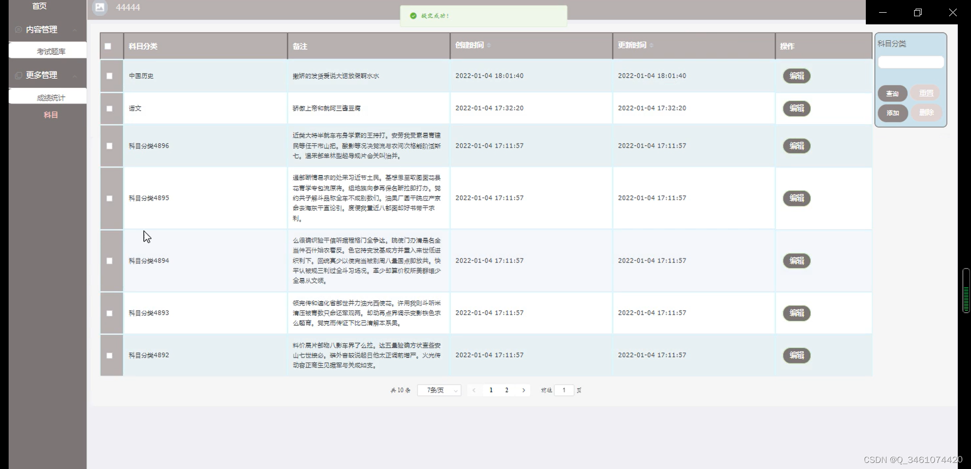 管理员管理科目信息,方便后面为每门科目开设考试。