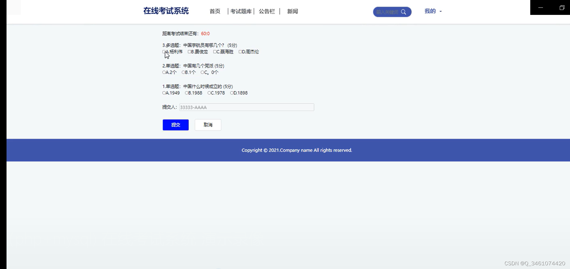 图5-4在线考试界面