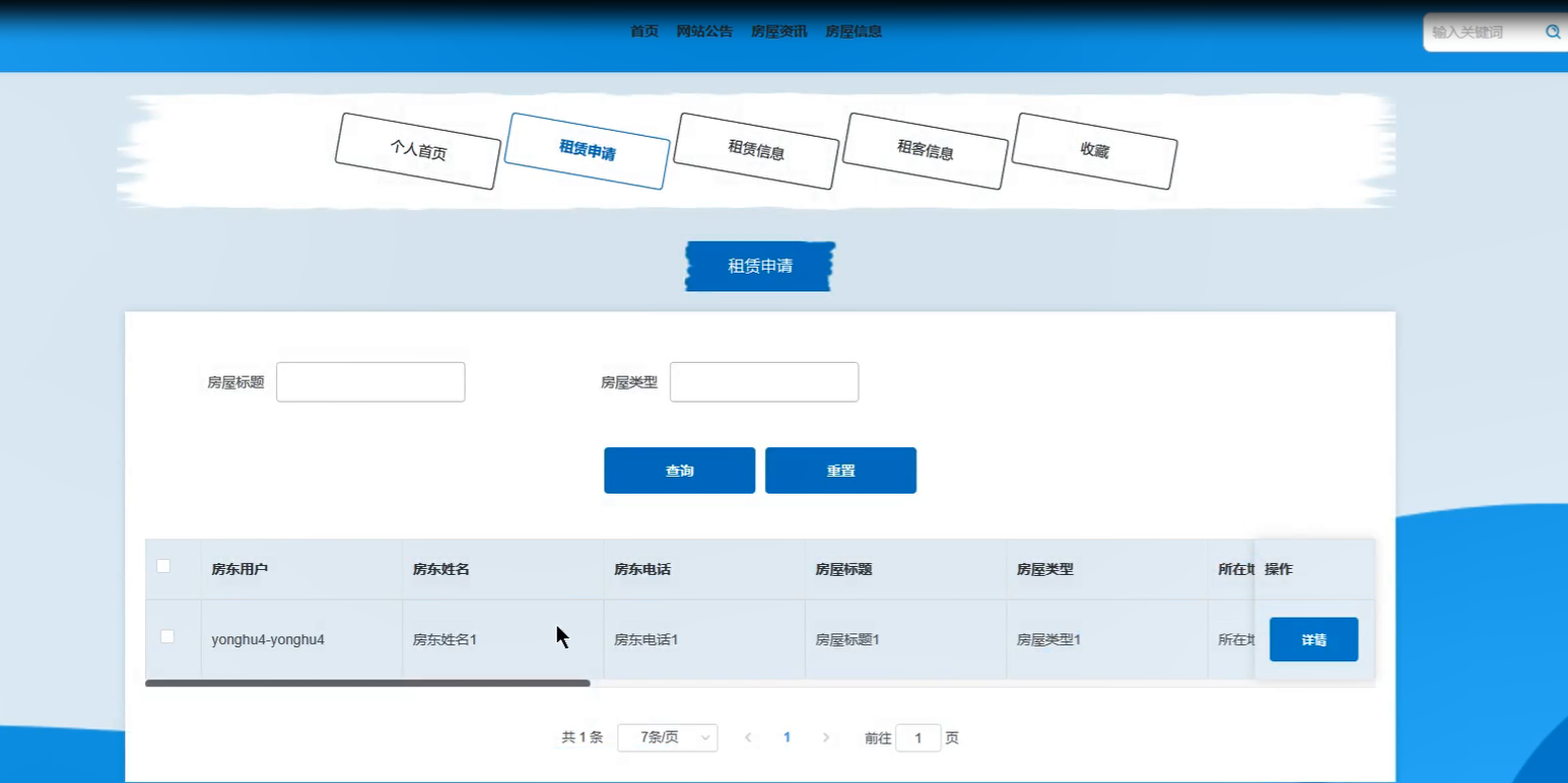 - 租赁申请管理:管理员可以查看租赁申请列表所有详情,可以进行增删改查操作。