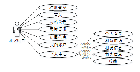 图2-1 房屋租赁管理系统租客用户角色用例图