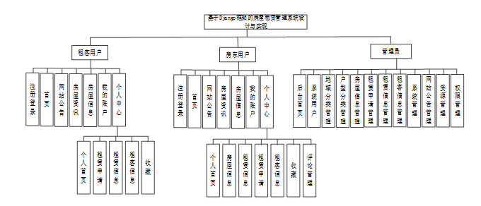 房屋租赁管理系统是中需要存储不少房屋信息,其模块功能结构,具体的结构图如下: