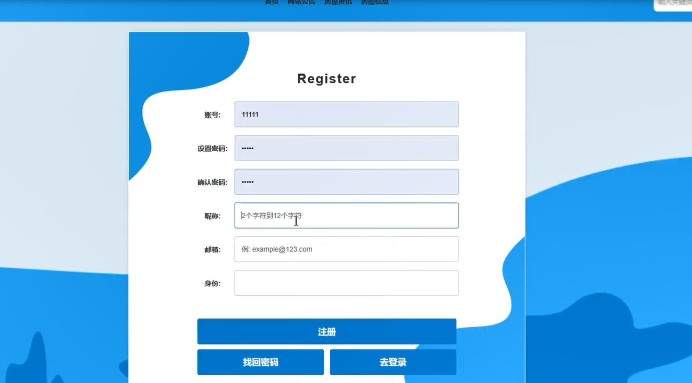 (1)注册登录:房东用户也是通过注册登录进入系统首页。