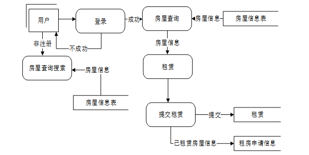 开发房屋租赁管理系统最主要的一个目的就是实现用户对房屋的租赁,图2-4就是系统的数据流图。