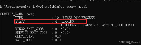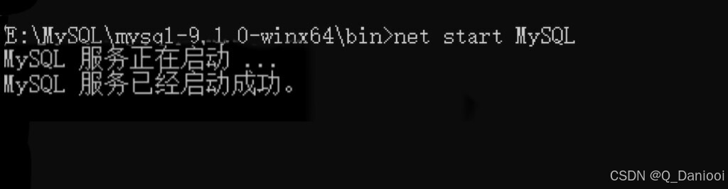 继续执行命令:net start MySQL (关闭MySQL服务:net stop mysql)