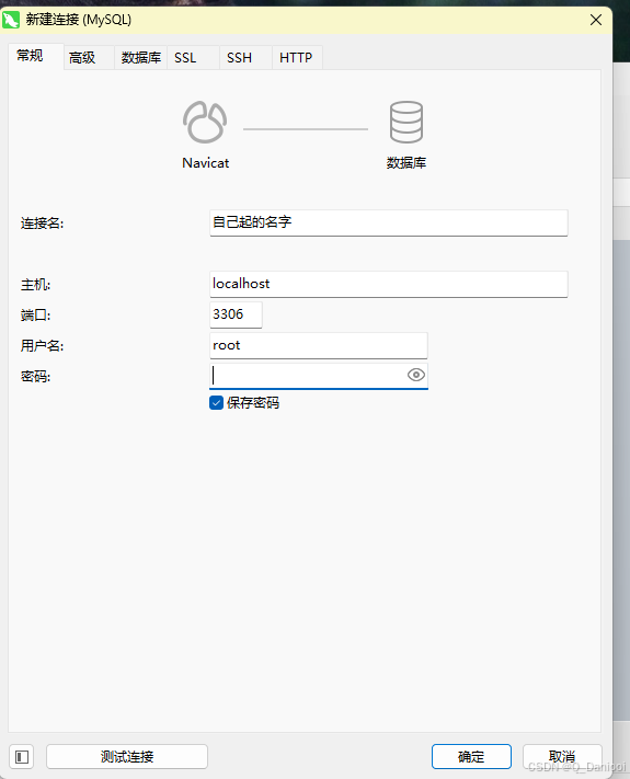打开数据库管理软件,我这里用的是Navicat,新建一个数据库,因为没有设置密码,所以连接时不用输入密码,直接点确定。
