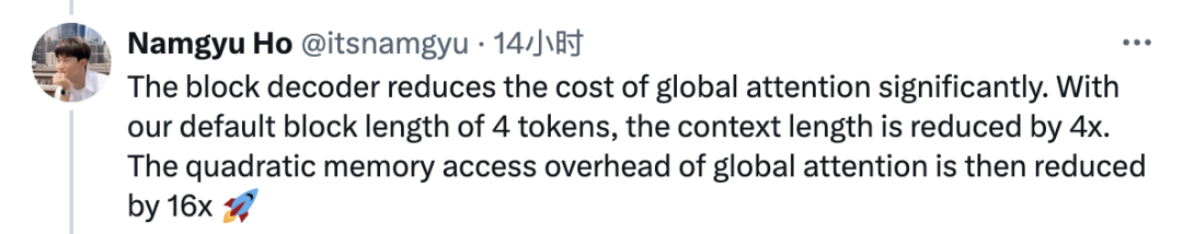 使用其默认的4个Token的块长度,全局注意力的二次内存访问开销减少了16倍。
