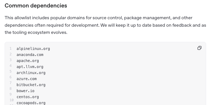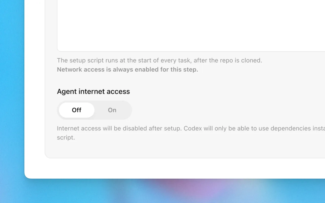 现在,您可以在任务执行期间让 Codex 访问互联网,以安装依赖项、升级包、运行需要外部资源的测试等。