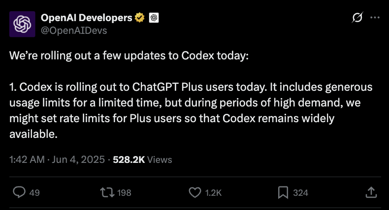 首先,刚发没多久的AI编程神器CodeX,现在可使用的用户群体扩展至了Plus用户。