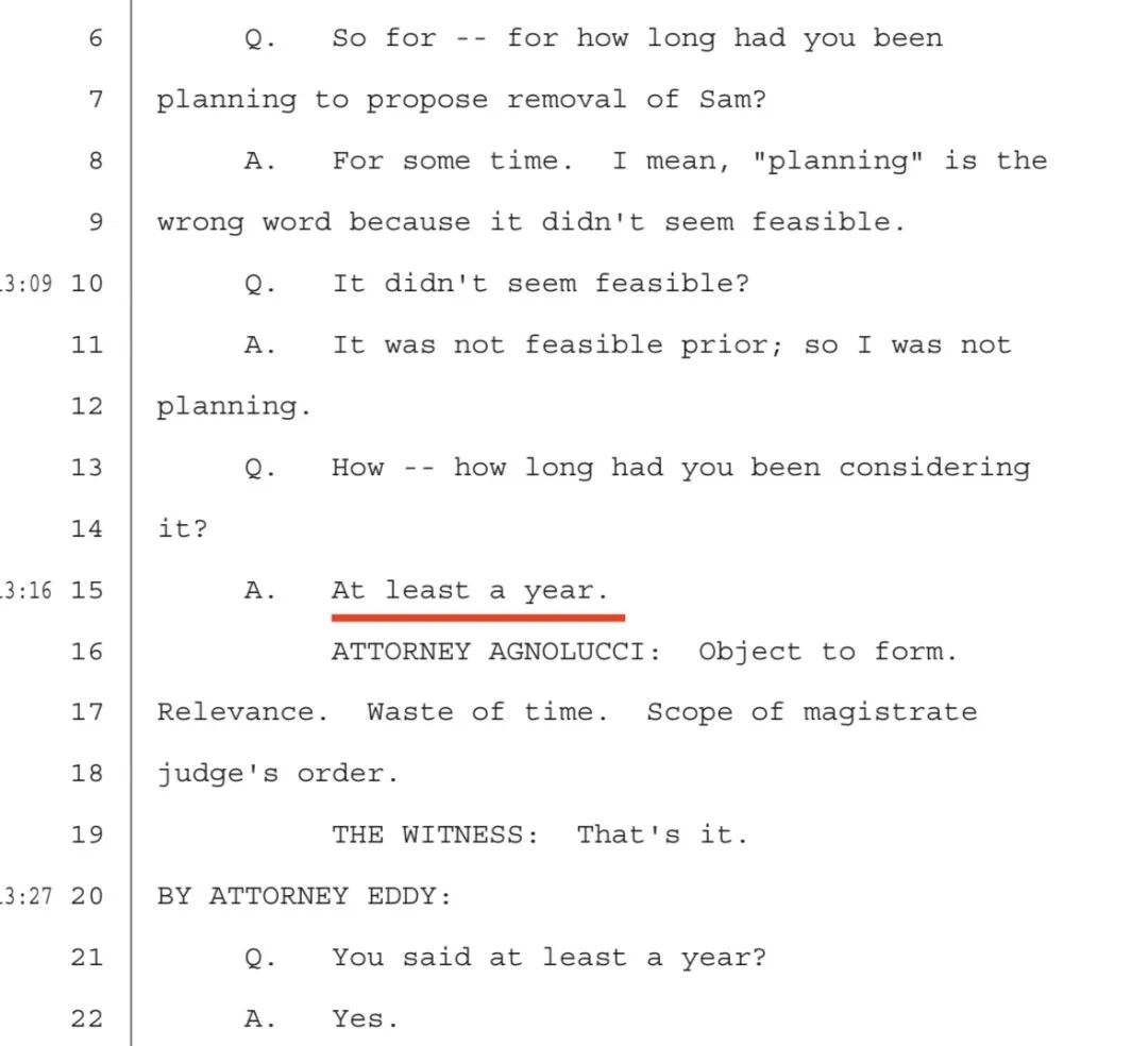 从证词来看,“宫斗”事件是llya和时任OpenAI CTO的Mira Murati早有密谋,甚至为此策划了一年之久。