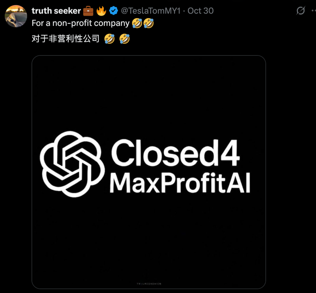 但不持股也带来了严重的公司管理问题,之前董事会罢免奥特曼职位一事,就部分源自这种“非营利控制vs商业执行”的结构冲突,而最近llya在奥特曼与马斯克官司的最新证词中,也证实了这一说法。