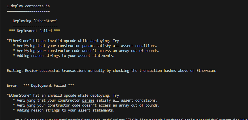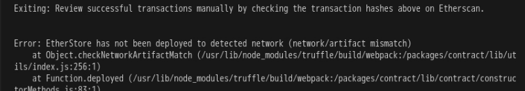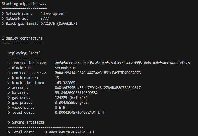 接着输入,truffle migrate ,控制台出现下面,本地ganache出现日志代表部署成功。