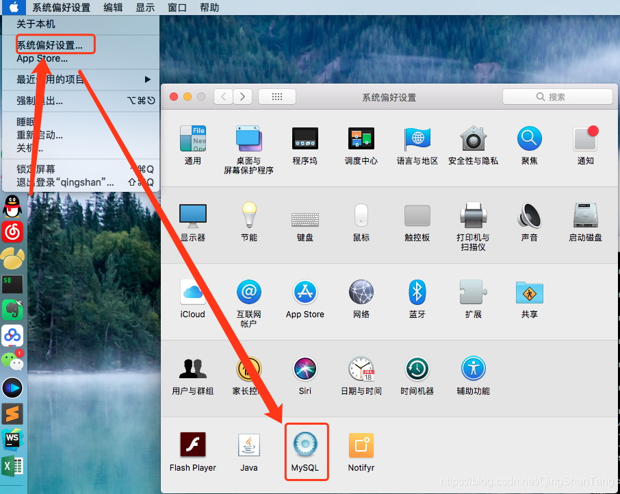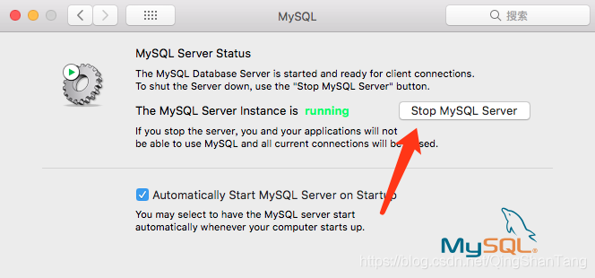 1.4 关闭MySQL !!!!(在系统偏好设置里面关闭MySQL,因为只有重启服务接下来修改的配置文件才能生效)