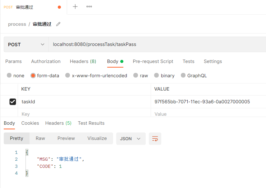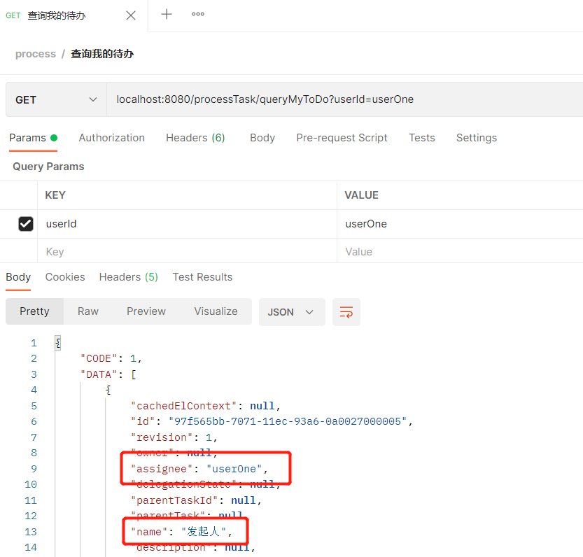 在刚刚查询待办的返回数据中就可以获取到TaskId