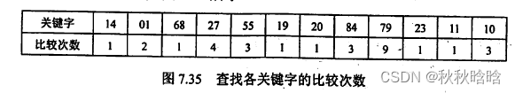 查找各关键字的比较次数如图所示。