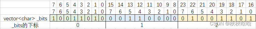 - 先num/8,算出num映射到哪个char里。19/8=2,19在_bits[2]这个char中。