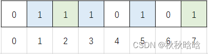 数据"string"对应的哈希值分别为2、3、7,把这3个位置的bit置1: