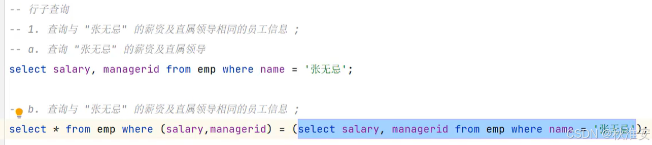 3.行子查询(子查询结果为一行)