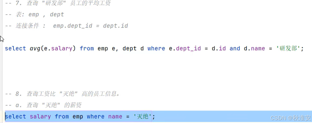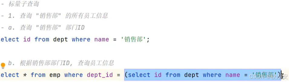 1.标量子查询(子查询结果为单个值)