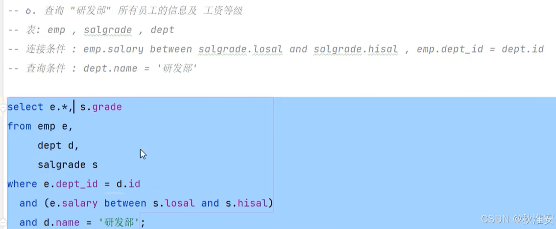 要注意多表之间的连接条件来消除笛卡尔值