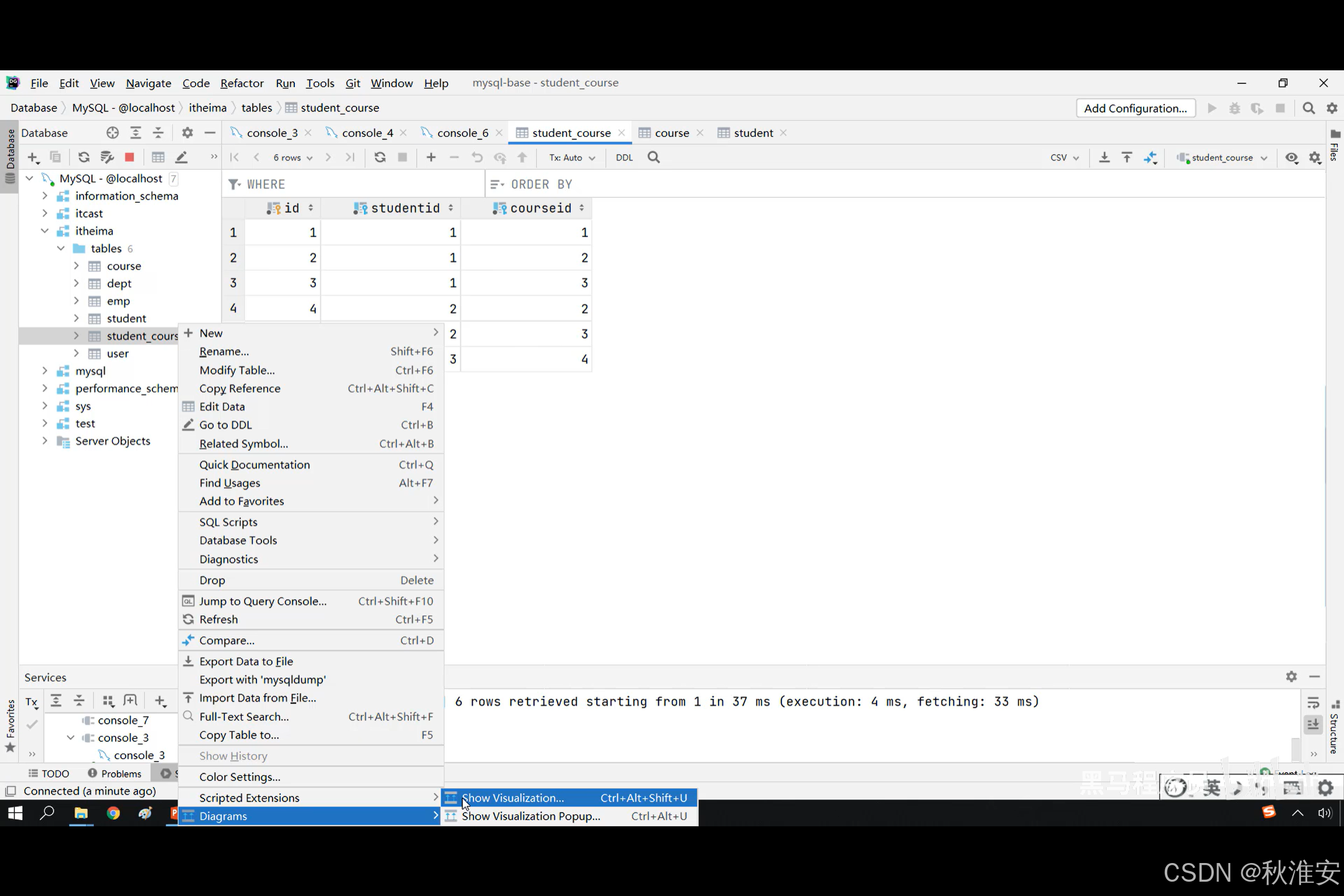 笛卡尔积:笛卡尔乘积是指在数学中,两个集合A集合和B集合的所有组合情况(在多表查询时,需要消除无效的笛卡尔积)