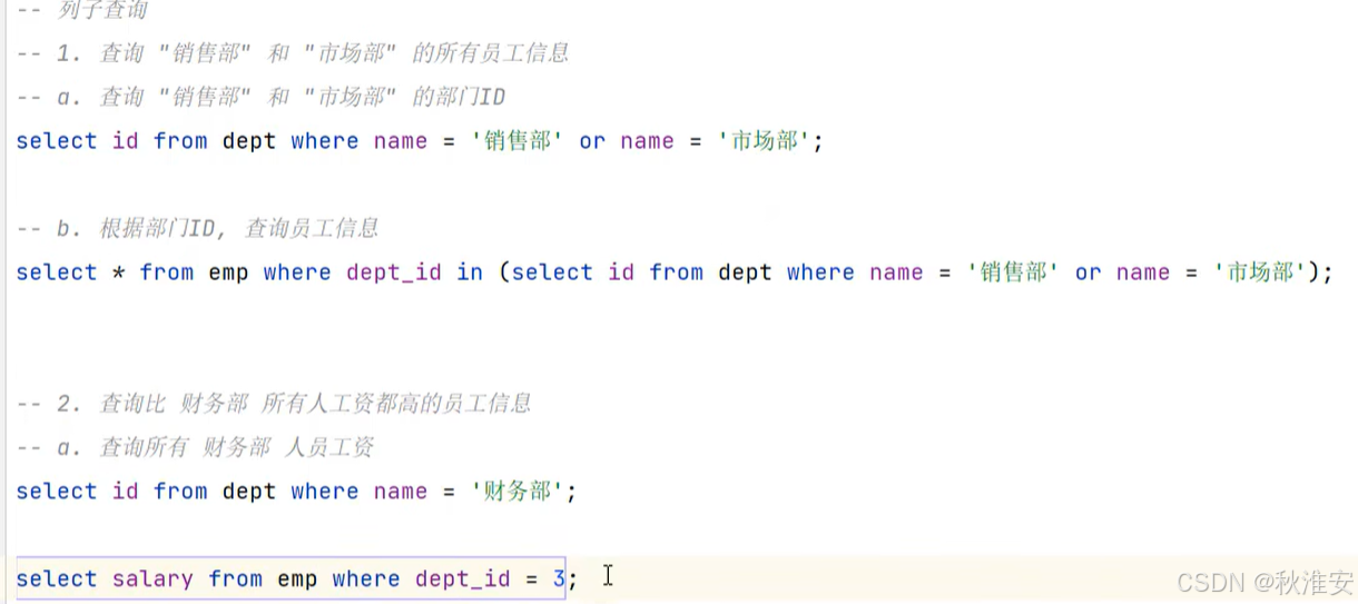 2.列子查询(子查询结果为一列)