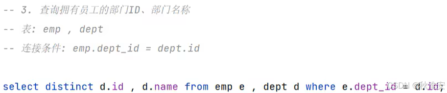 3. 查询拥有员工的部门ID、部门名称。