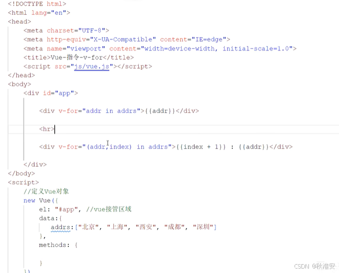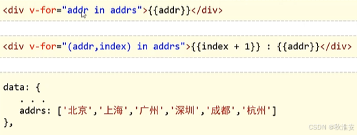 如果要拿到遍历的索引,如上图第二行的方式:addr代表遍历出的元素,index代表遍历的索引