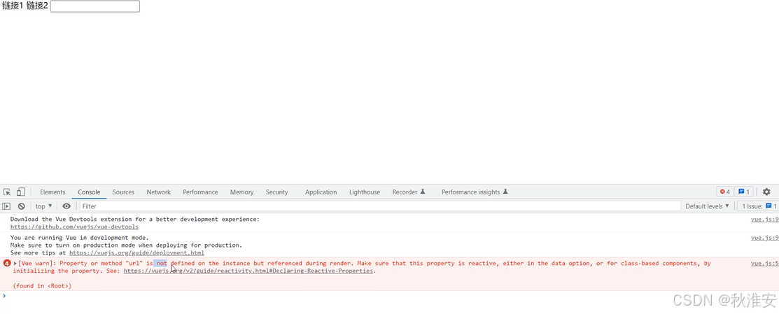 例如上面的v-model绑定的模型变量是url,如果没有声明,如下图: