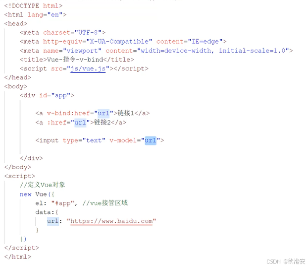 注意:通过v-bond或者v-model绑定的变量,必须在数据模型中声明