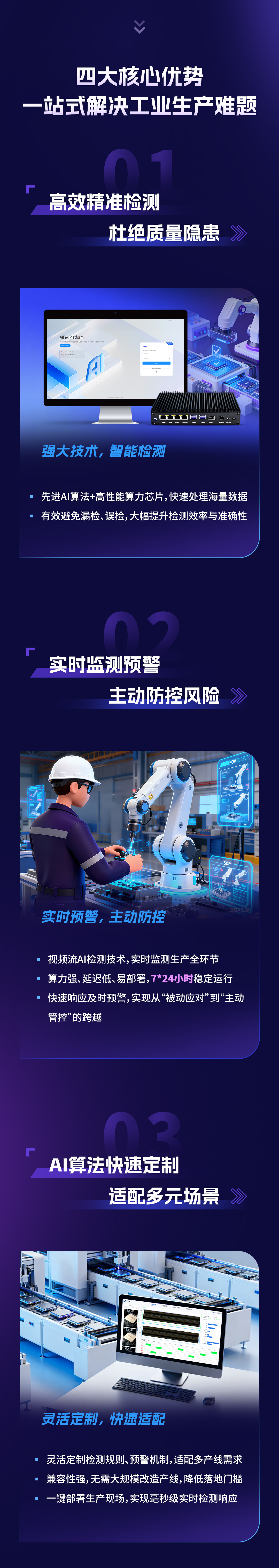 AI算法灵活定制,适配多元场景:方案支持针对企业业务需求,快速实现检测规则与预警机制功能,兼容不同行业、不同产线的多样化监测场景,无需大规模改造现有生产体系,满足个性化需求的同时降低落地门槛。
