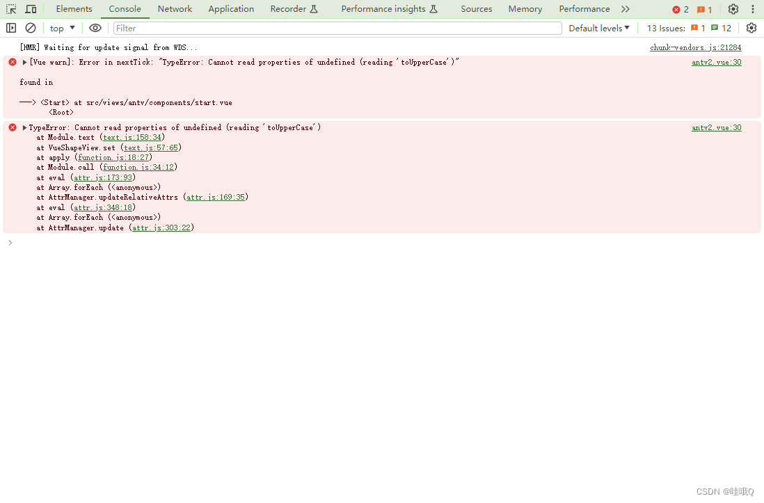 【vue2+antvx6】报错Cannot read properties of undefined (reading ‘toUpperCase‘) 发现虽然不报错了,但是我的label不显示了 ,那我就想判断是不是中文,要是中文就把needEmpty改为false,但是text.js里面正则不能用,老是报错,我就只能出此下策了(别学我,我这只是为了功能正常而已,求有大佬告知我怎么改)。所以获取node.tagName的时候也就是undefined,undefined是不能使用toUpperCase()的,所以我改变了一下判断条件。我发现只要在表单中使用i.parameter_name这样的形式,就会出现这样的问题。