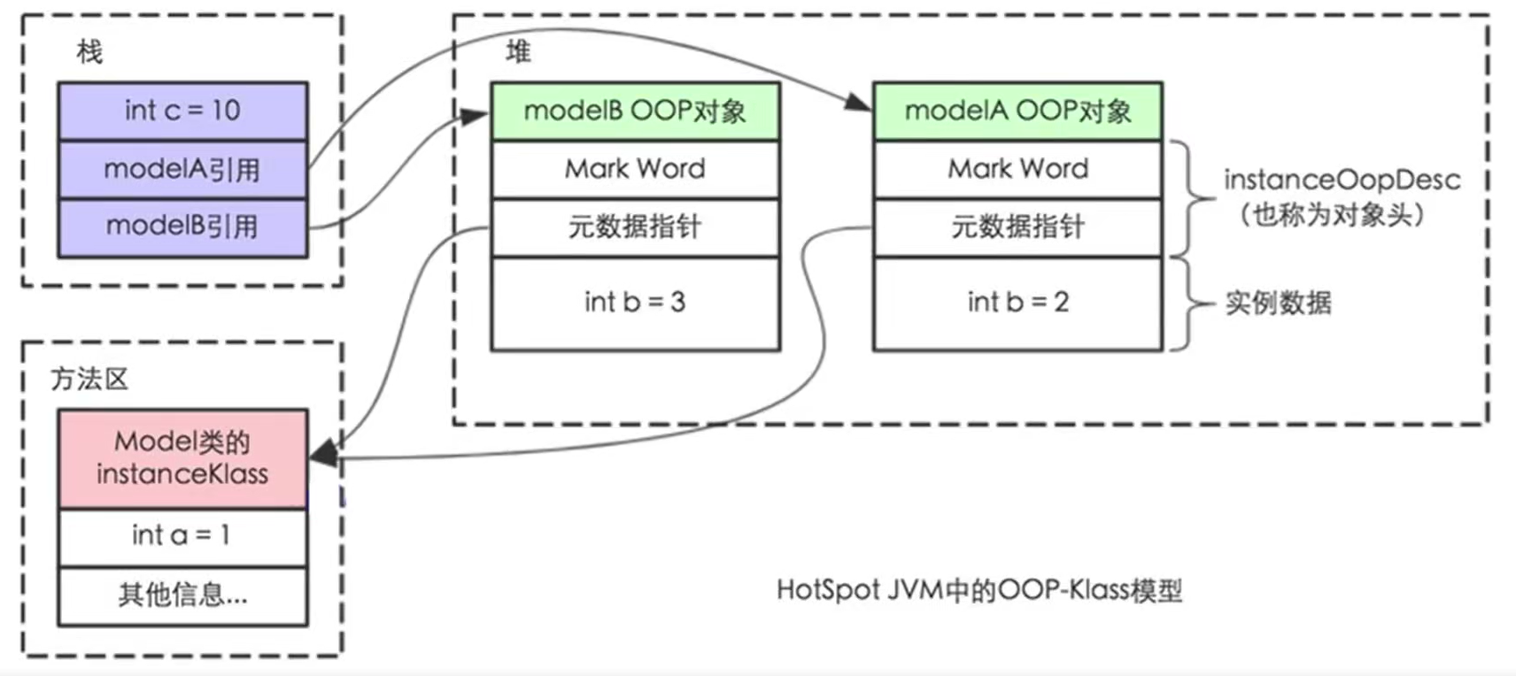 - 首先针对一个Model类,会在方法区创建出类的信息,instanceKlass