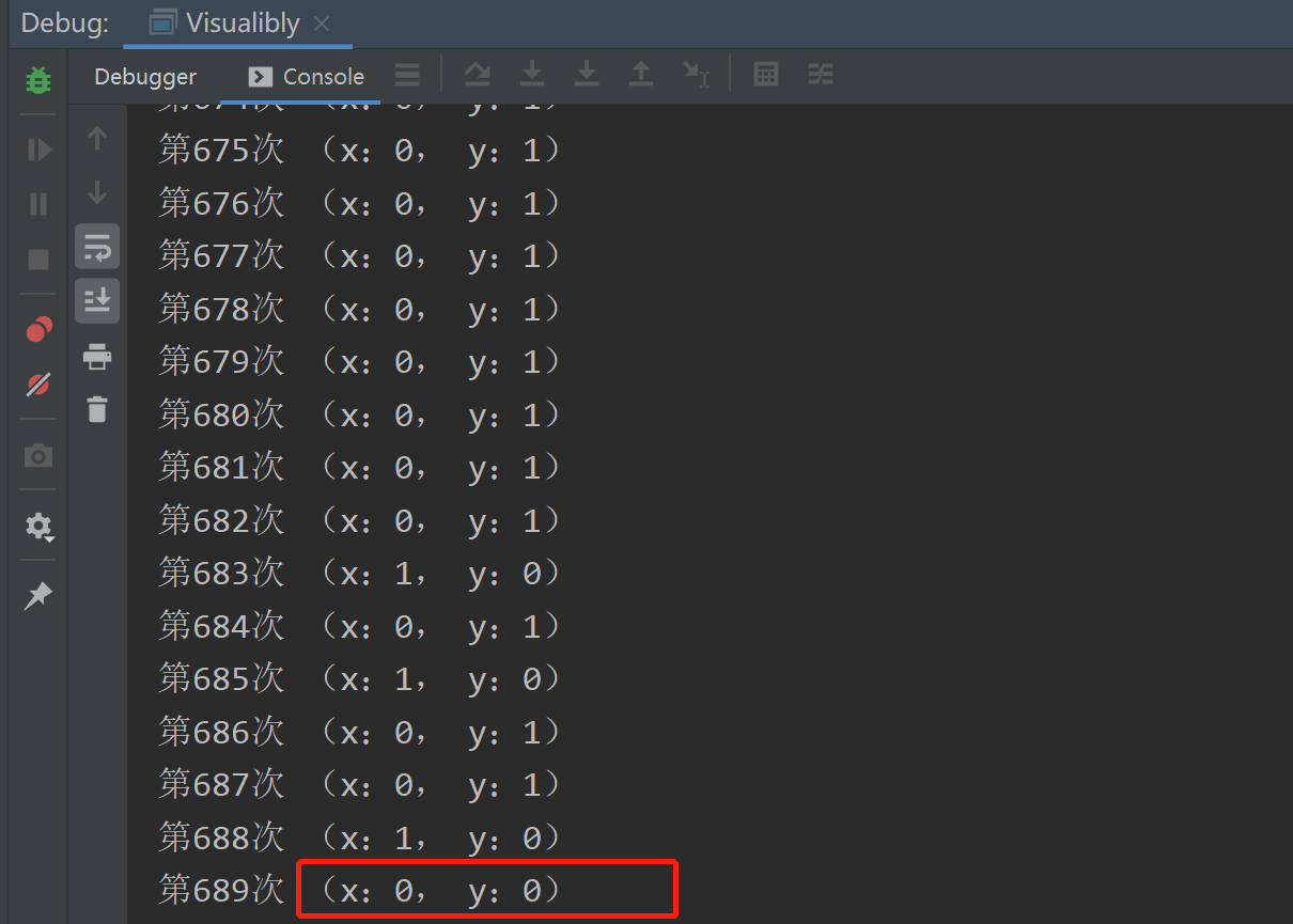 这里加上循环,来测试一下,只有当满足条件 x=0,y=0,才能跳出循环: