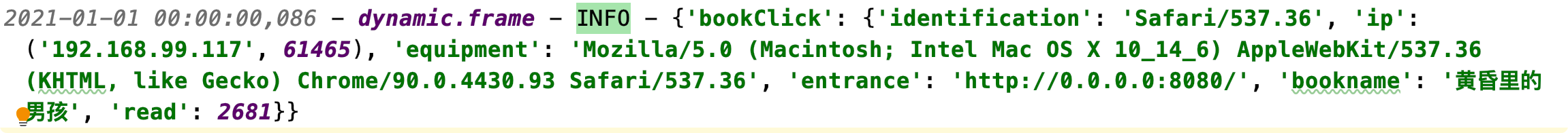 开发人员需要根据数据文档中的内容进行字段的收集保存,根据前面方案中提到的数据埋点形式,可以将数据存储到日志中,在原有的代码基础上,我们需要额外增加一段日志写入的代码