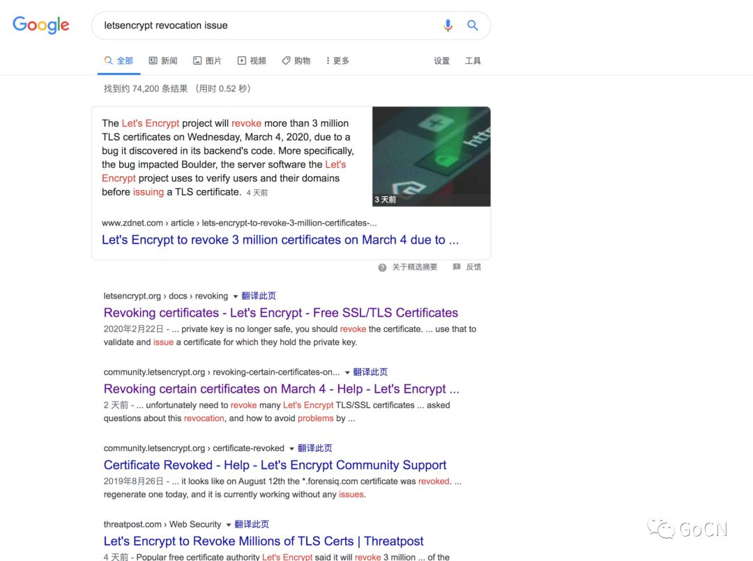 邮件大意为:Let's Encrypt 的证书校验代码中存在一个 BUG,部分证书受到了这个 BUG 的影响。我们将会在 3 月 4 日(周三)开始吊销受影响的证书,如果你的证书在吊销列表中,请立即更新证书到最新版本。