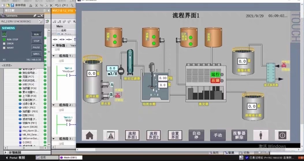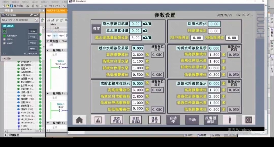 西门子真实水处理1200PLC程序+触摸屏程序,V16打开学习程序,可仿真实验