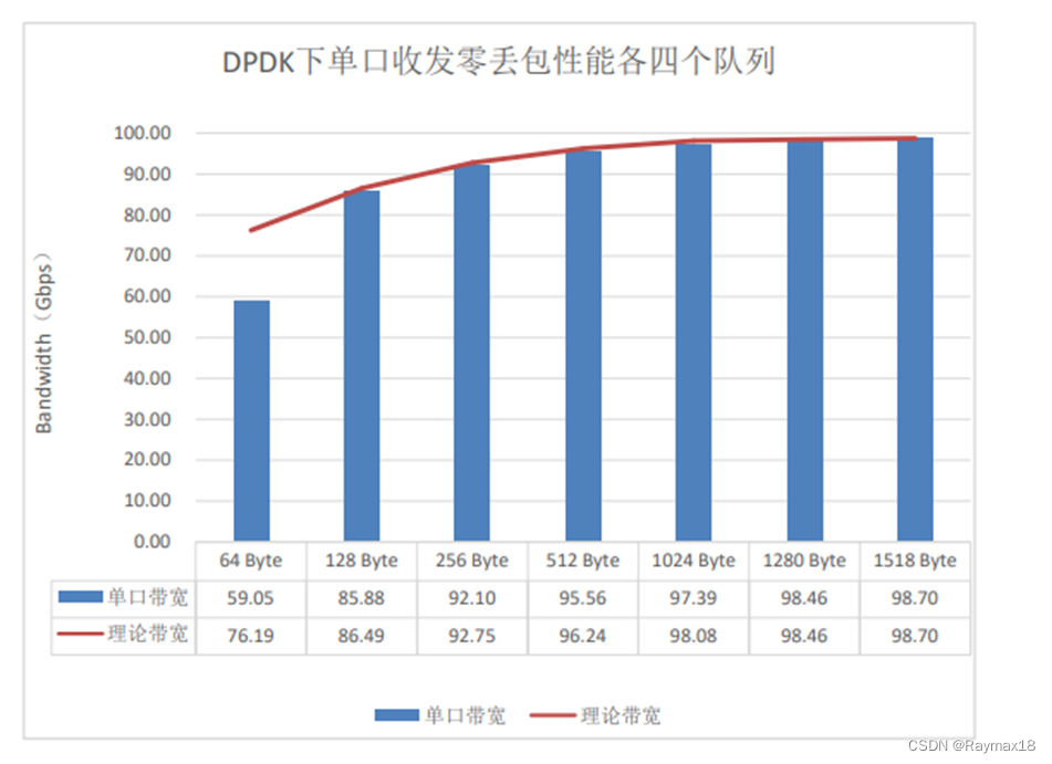 锐文网卡10G25G40G100G在飞腾S5000C 16 core 服务器配华为openEluler 22.03的dpdk性能.腾S5000C主板下DPDK性能测试(100GbE 40G 25G 10G )测试锐文网卡100GbE 40G 25G 10G在DPDK下测试。1网卡,1口,单口配4个队列, 共4个队列用4个核。gcc 版本 10.3.1 (GCC)测试环境 思博伦 信而泰 锐文测试仪。图2:测试1的测试结果。图2:测试1的测试结果。图5:测试3的测试结果。图2:测试1的测试结果。
