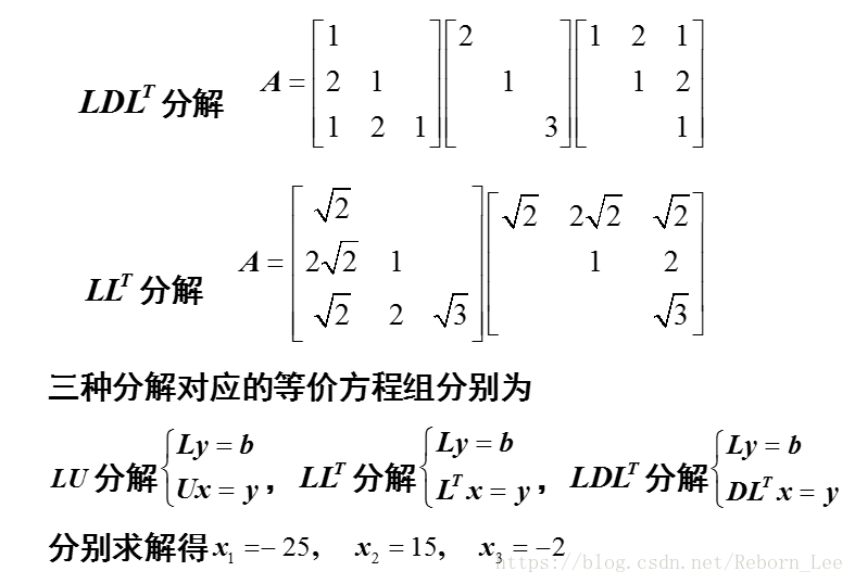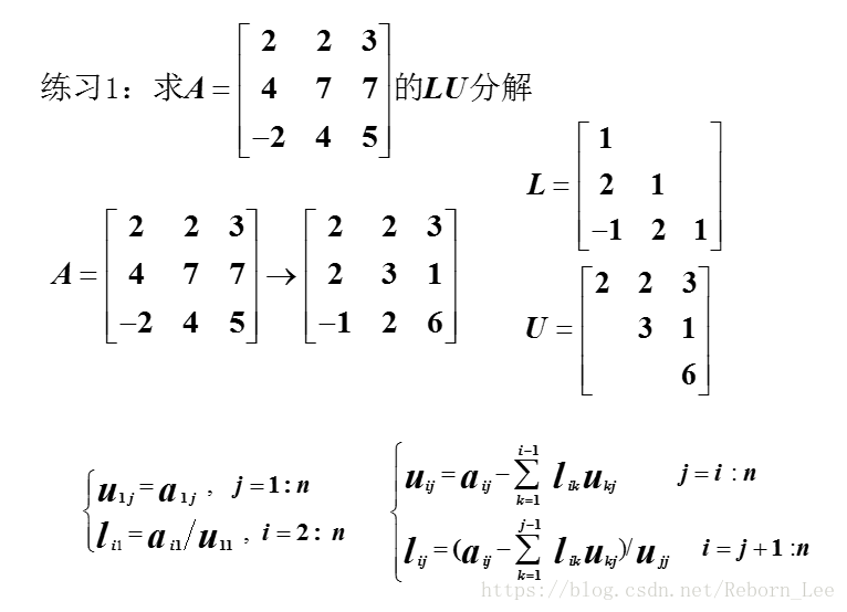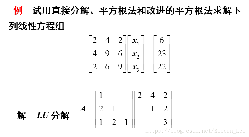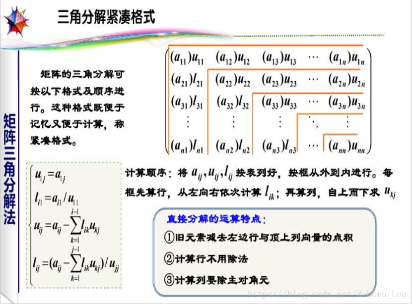 实际上,可以直接处理矩阵,得到矩阵的LU分解,这就是矩阵的直接LU分解;直接通过矩阵的元素得到计算LU元素的递推公式,不需要任何中间步骤。