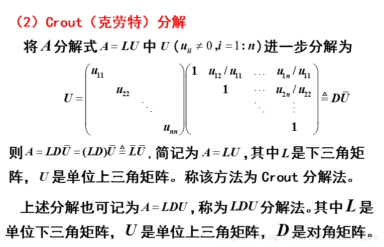 所以套路是一样的,你说是不是dan teng;如果我只记忆一种分解,那公式我也能记住,可是又多了这一个,这样dt之处在于这样会让人突然混乱哪一个是Doolittle分解,哪一个是Crout分解;