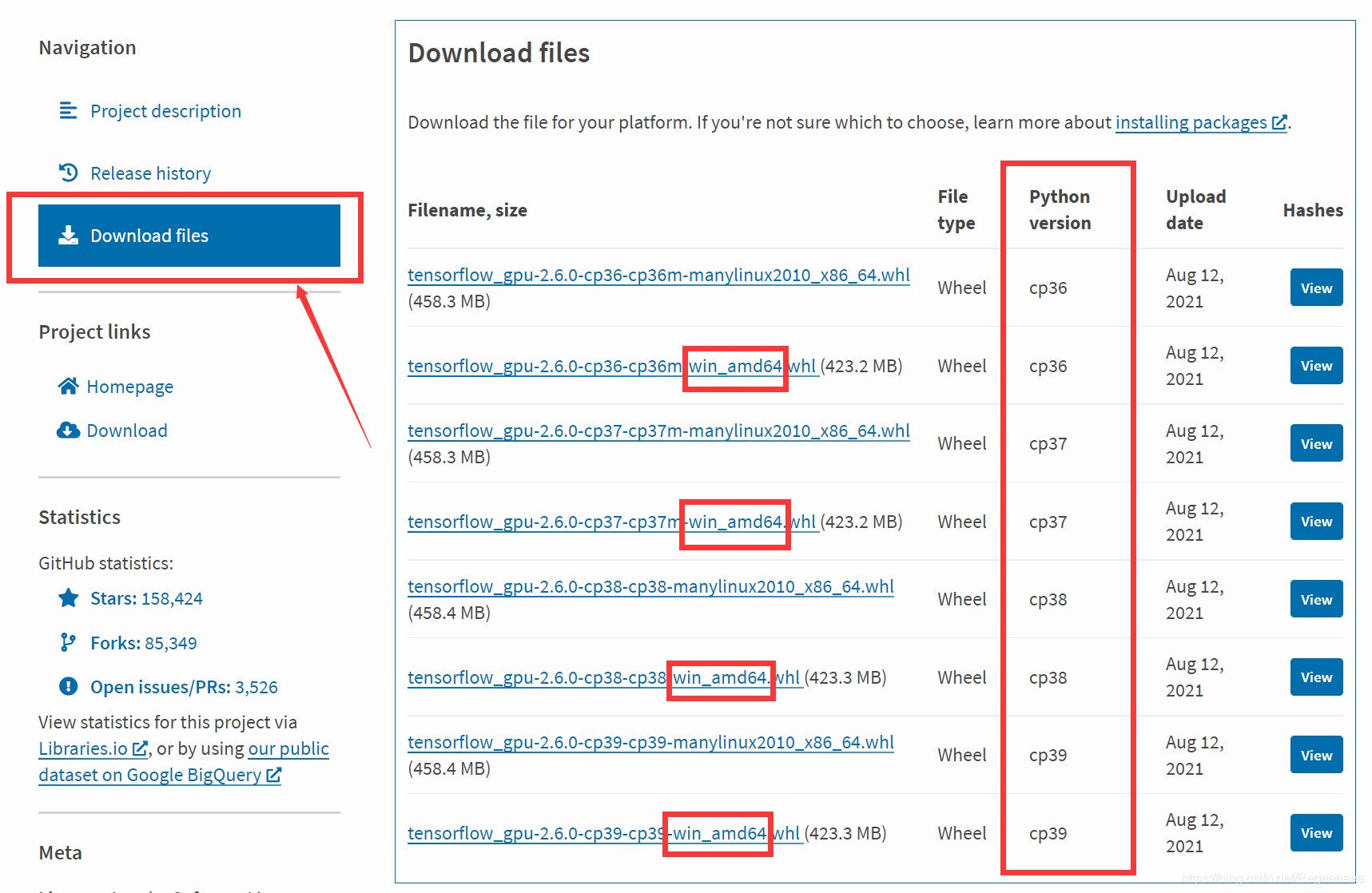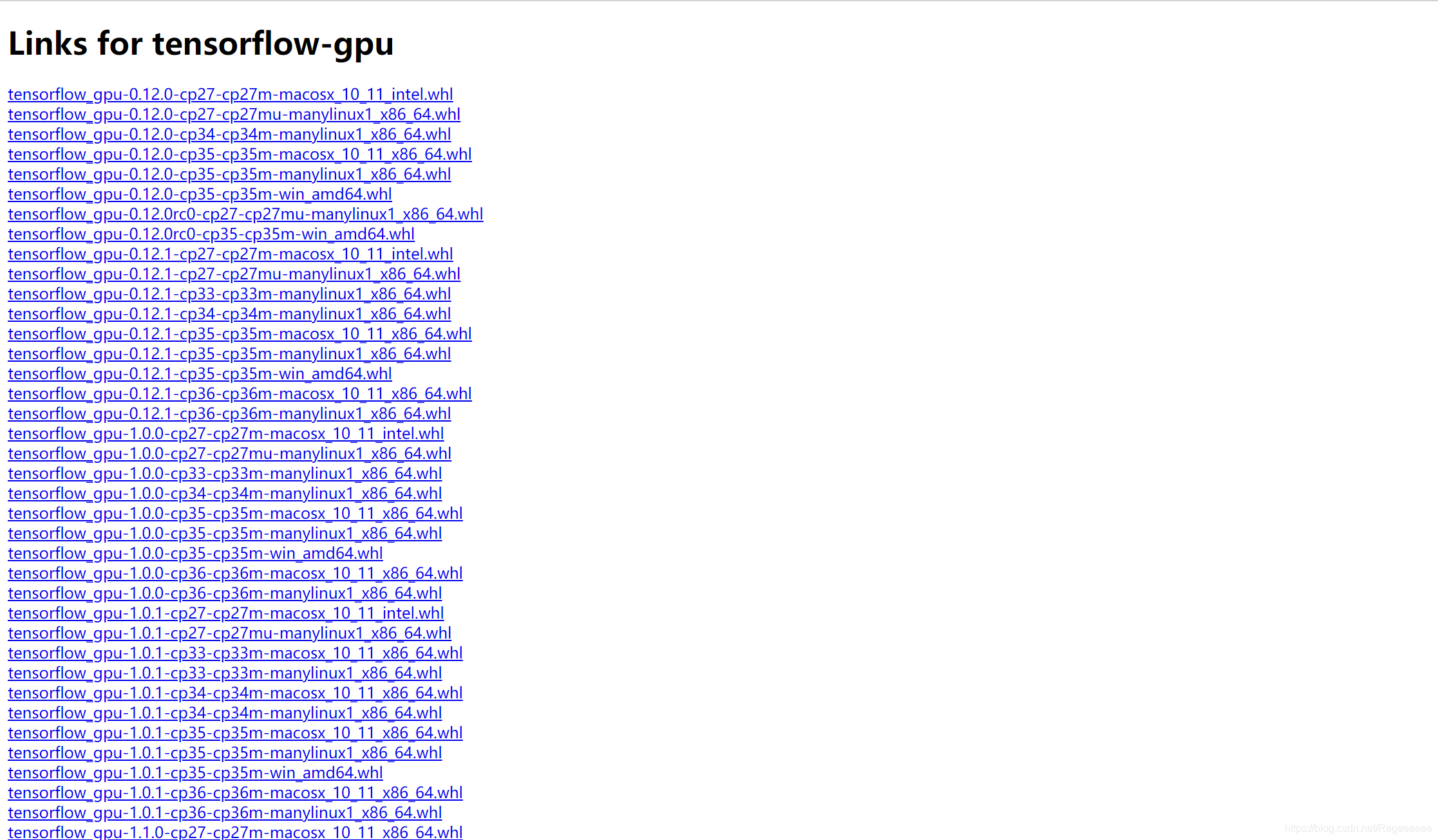 ——此时必须注意选择的tensorflow-gpu链接是否与python版本对应,且是否为windows版本
