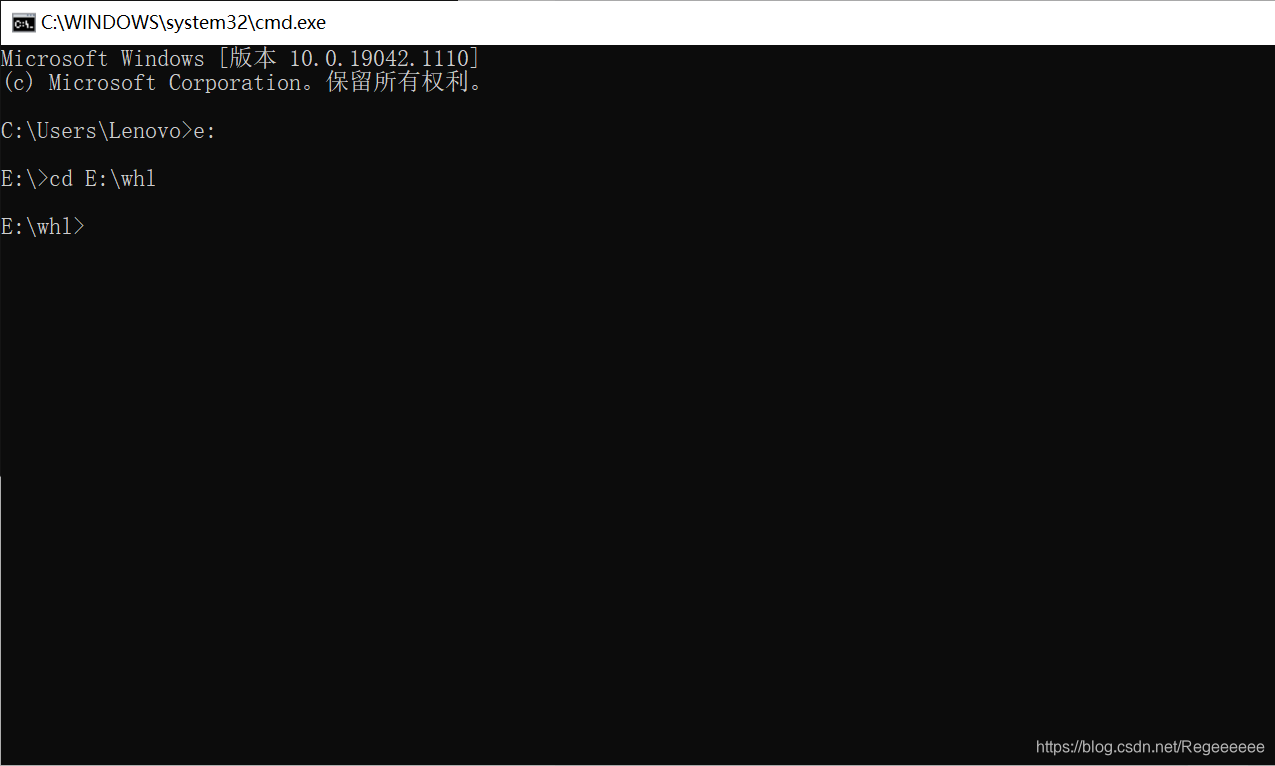 ——输入cd E:\whl,回车(注意cd后面有个空格)
