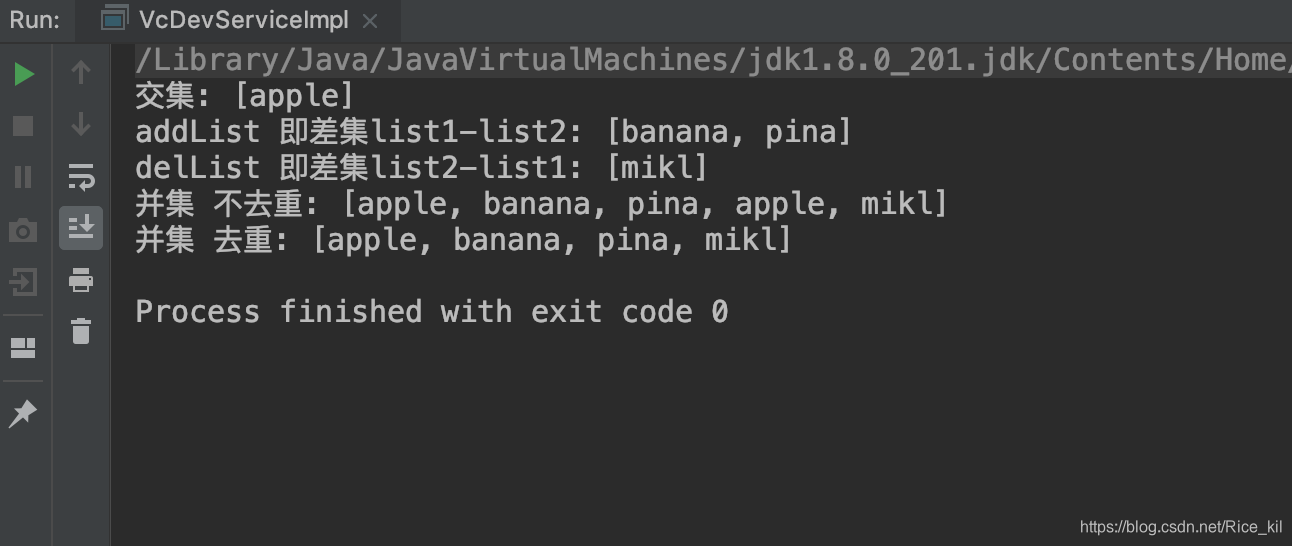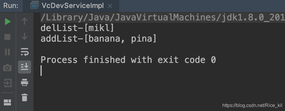 测试结果:我们可以看到相对新的集合来说,老的集合没有“banana”和“pina”,而老的集合有的“milk”新的集合则没有,结果正确