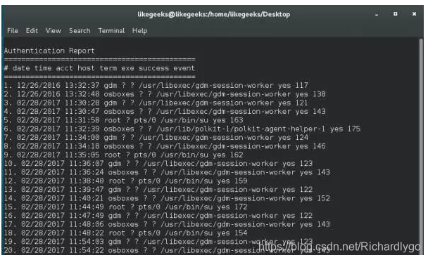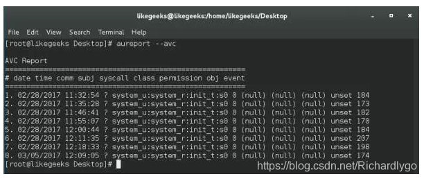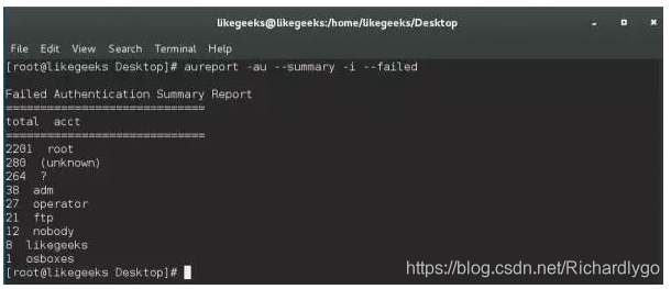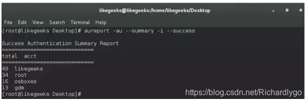 aureport工具被设计为创建一些基于列特征的报告,以显示在审计日志文件中所记录的那些事件。