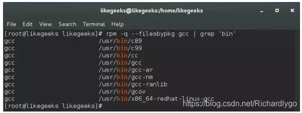 $ rpm -q --filesbypkg gcc | grep 'bin'