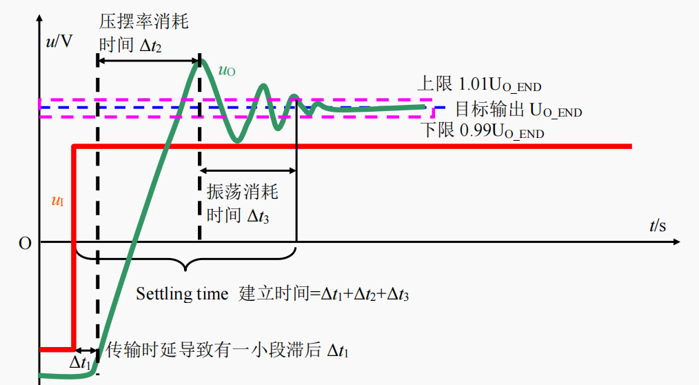 定义:运放接成指定增益(一般为 1),从输入阶跃信号开始,到输出完全进入指定误差范围所需要的时间。所谓的指定误差范围,一般有 1%,0.1%几种。