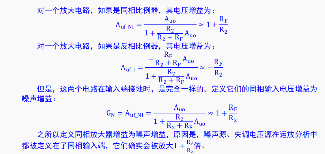 其中,GN被称为噪声增益,在噪声计算、输出失调计算中应用很广泛。其含义如下: