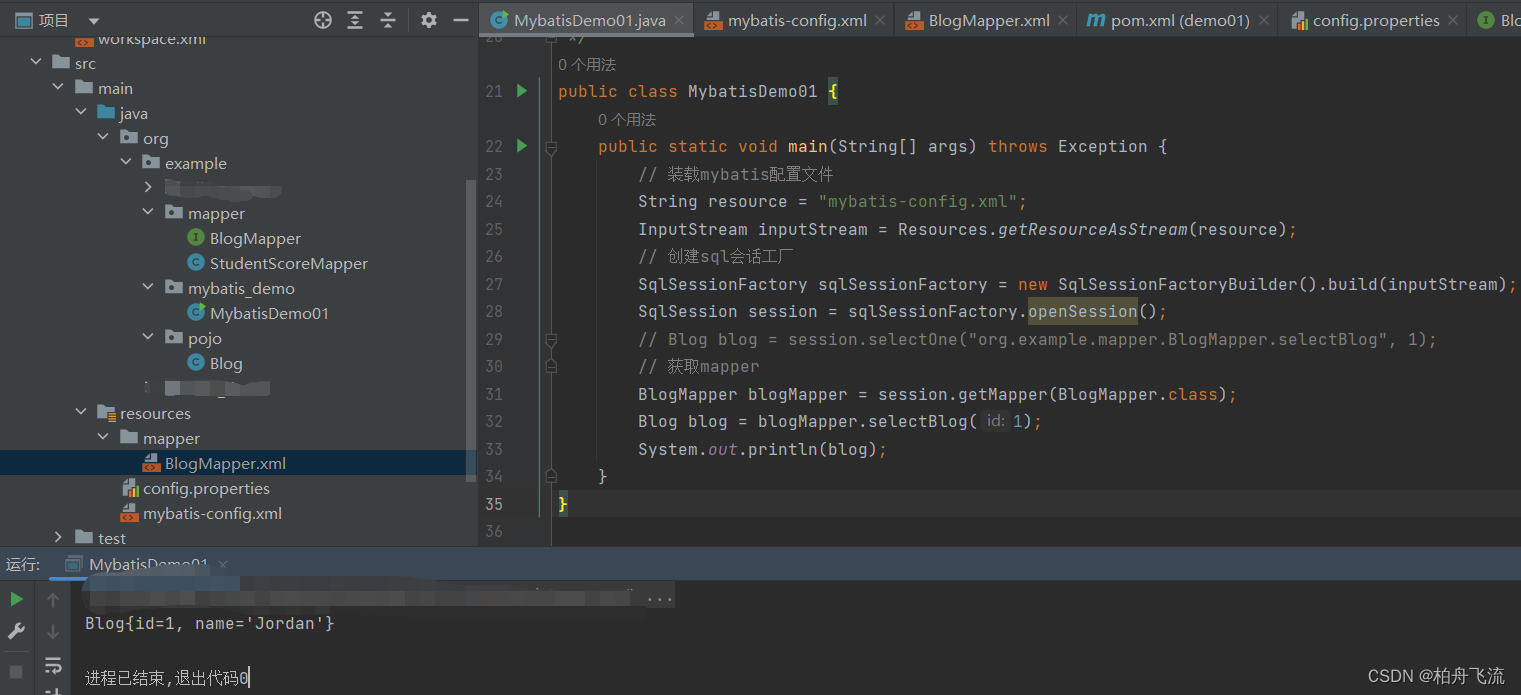 // Blog blog = session.selectOne("org.example.mapper.BlogMapper.selectBlog", 1);