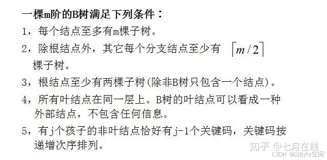 一棵m阶的B 树 (注:切勿简单的认为一棵m阶的B树是m叉树,虽然存在四叉树,八叉树,KD树,及vp/R树/R*树/R+树/X树/M树/线段树/希尔伯特R树/优先R树等空间划分树,但与B树完全不等同)的特性如下: